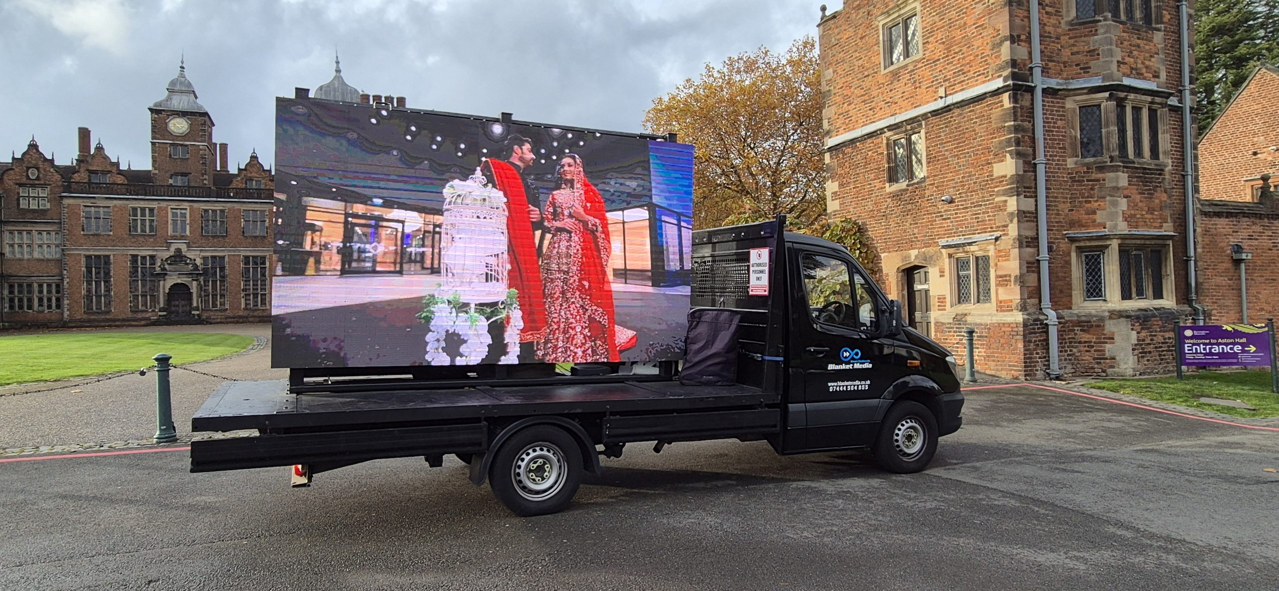 View OUR WORK Congratulations Salim & Sarah on their beautiful wedding Malabar Gold and Diamonds Promotion Launch of the ICabby Taxi Phone App Funeral of the late Mr Joseph Lowther Euro Finals at The Oak Tree on a big screen Grand Opening of Nafees Bakers & Sweets Lozells Hired for advertising Sponsors for a Charity “MK Events” at Al Miraj Banqueting Suite Sony Playstation surprise at a Birthday Party. Children playing on a big screen. Love is in the air Happy Wedding Day (Johny & Jinny) Happy Wedding Day (Samira & Ansar) In loving memory of Henrietta Mitchell Special Offer £99 Happy Valentine’s Day to Javeria from Ifty St Patrick’s Day Fashion Sale (Discount 30%) Food Sale (35% Off) Interior Design Company Hijab Shop Sale Solihull Superstars Football Club (Fundraising) Hired for the Palestine demonstration in Birmingham Blanket Media supporting the West Midlands Police Blanket Media supporting the NHS